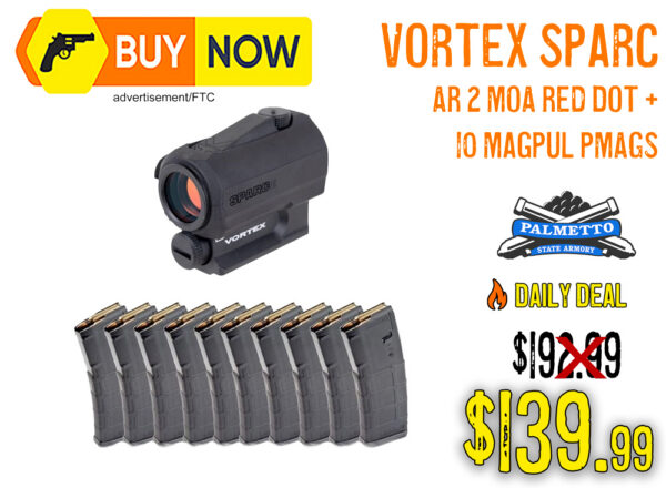 If you’ve been waiting to upgrade your optic and stock up on mags at the same time, this is it. Palmetto State Armory just dropped this Vortex SPARC AR + 10 PMAG bundle to $139.99, saving you $53.00 off the combined price.